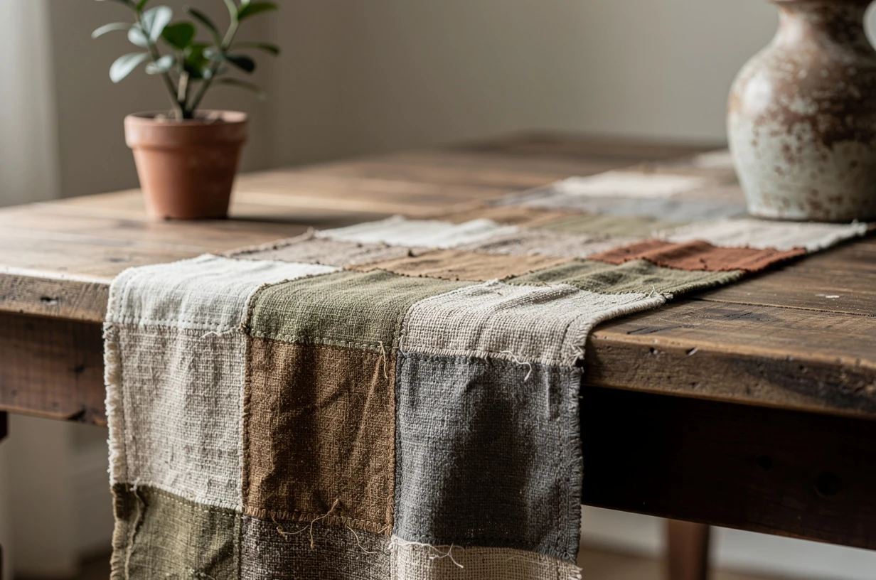 Associer plusieurs types de tissus (jean, lin, coton imprimé) multiplie les jeux de contraste visuel et tactile. Garder cependant une cohérence dans la palette de couleurs évite l’effet bariolé. Ce type de réalisation crée des chemins de table uniques qui ne ressemblent à aucun produit du commerce.
